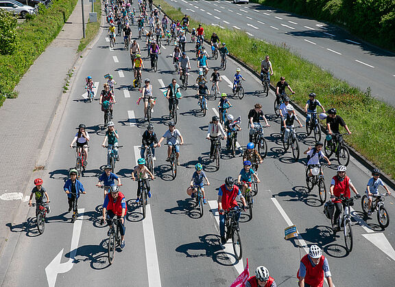 Im Rahmen des bundesweiten Kidical Mass Aktionswochenendes fuhr am Samstag ein Fahrradkorso..
