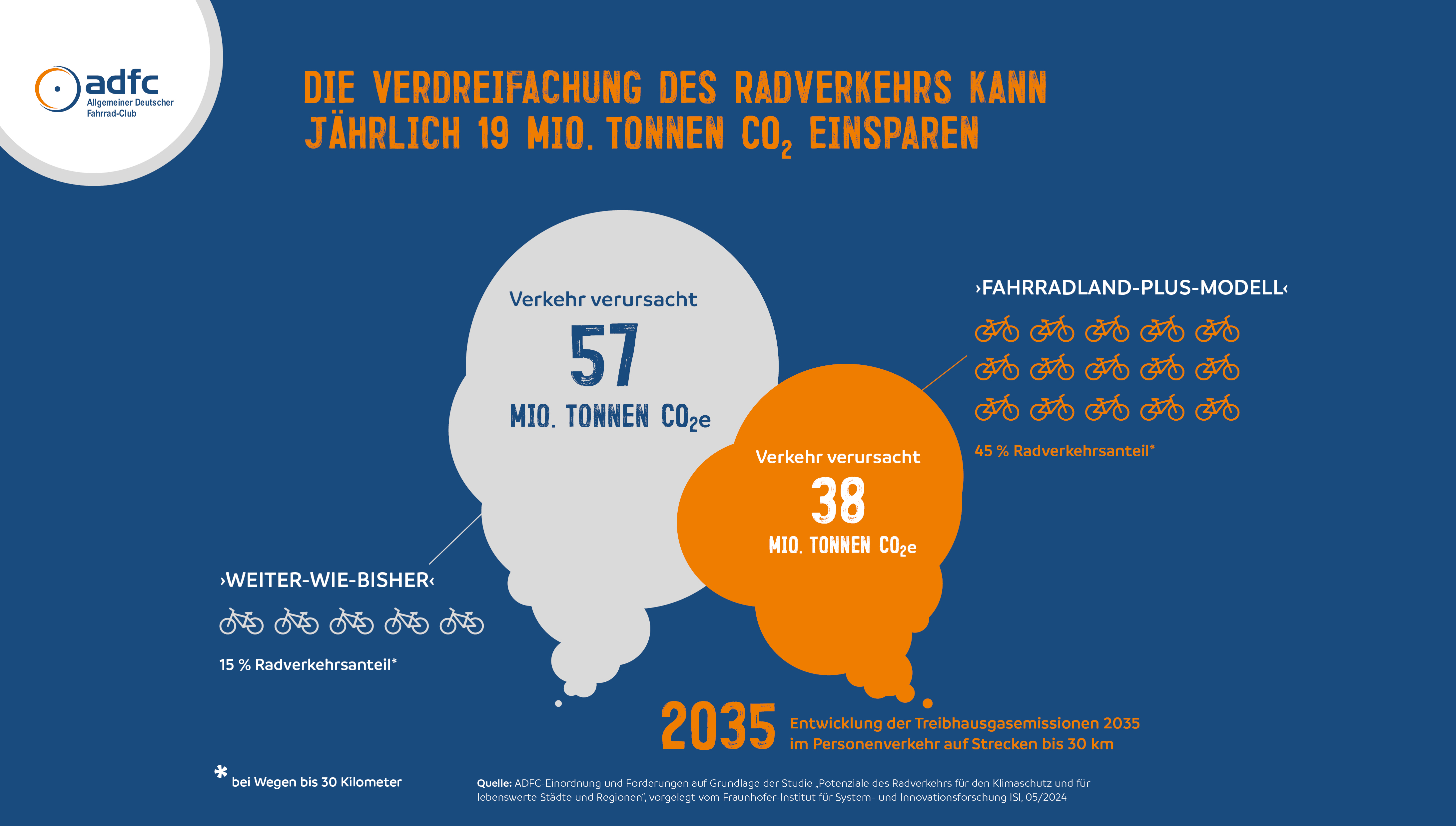 ADFC-Infografik: Verdreifachung des Radverkehrs kann jährlich 19 Mio. Tonnen CO2 einsparen